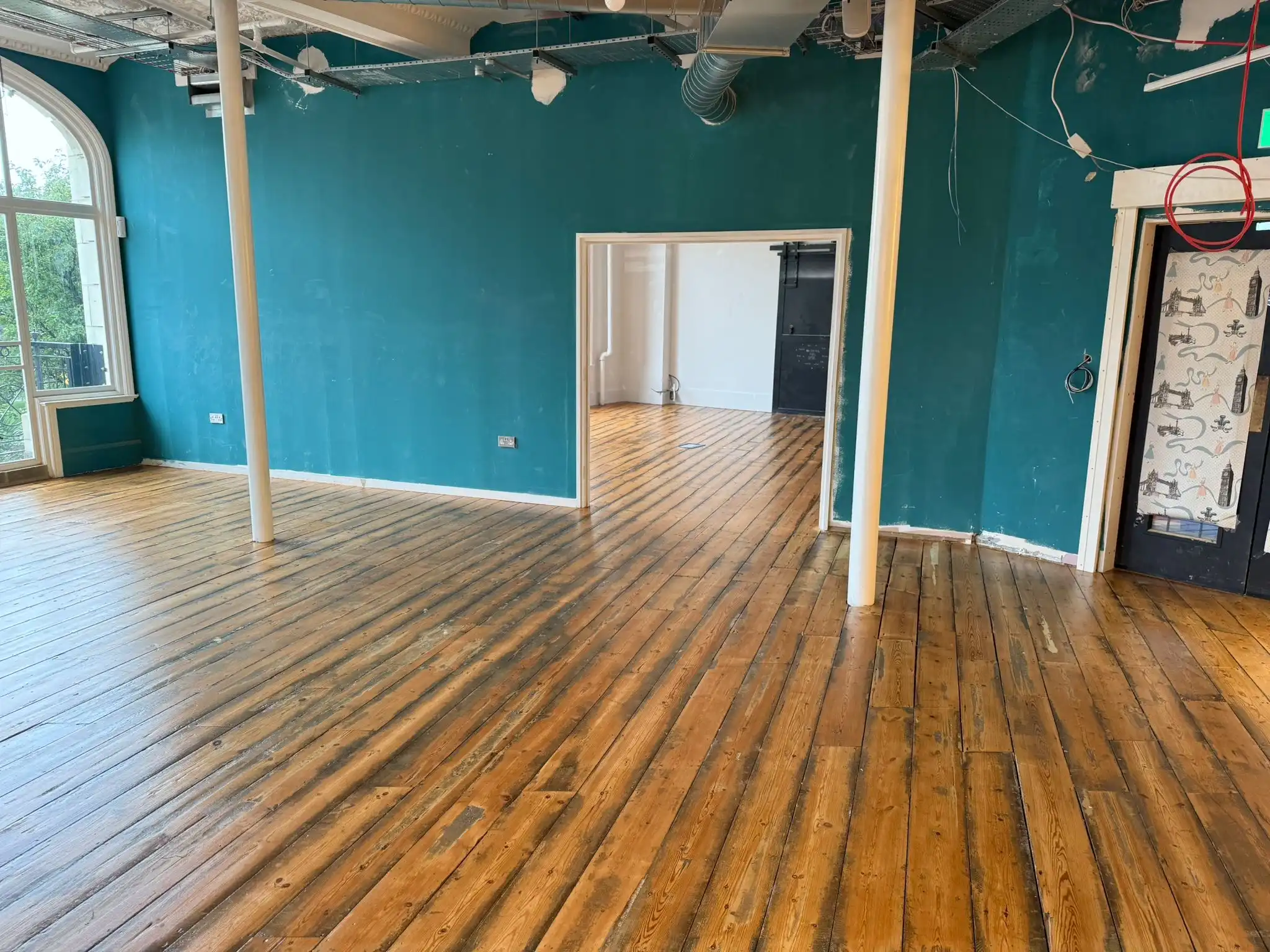 We started by removing the existing flooring to expose the building’s original floorboards. To reduce noise transfer between levels, we installed a silent floor system that integrates sound insulation without compromising structural integrity. We then reinstated and sealed the original floorboards throughout all three floors to preserve the building’s character.